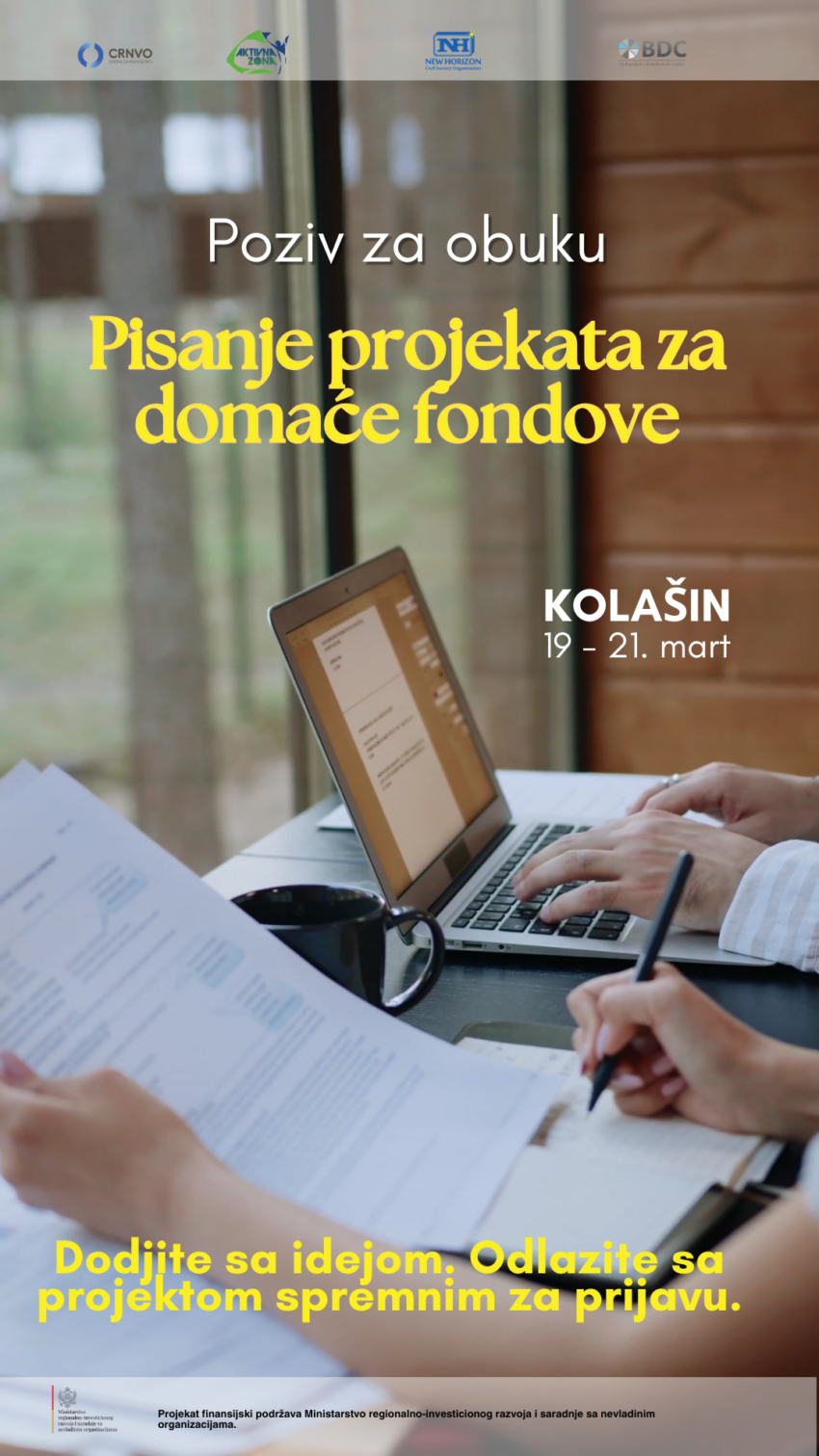 Mreža resursnih centara u Crnoj Gori, u okviru Kataloga obuka za 2026. godinu organizuje obuku na temu Pisanje projekata za domaće fondove.